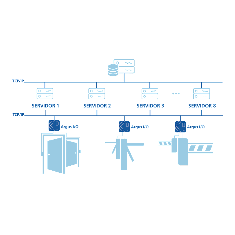É controlador com funcionamento em tempo real instalado directamente sobre a rede IP. Permite suportar leitores e outros dispositivos, incorpora os dispositivos de I/O (relés e sensores) e assegura a comunicação de/e para a rede sobre, cabo, WIFI ou 3G. As unidades do Argus I/O não necessitam de fazer “pooling”, tendo a capacidade de interromper o servidor, quer para comunicações de dados, quer para alterações dos I/O de controlo. Cada unidade pode comunicar até com 8 servidores no caso de falta de resposta do servidor principal.